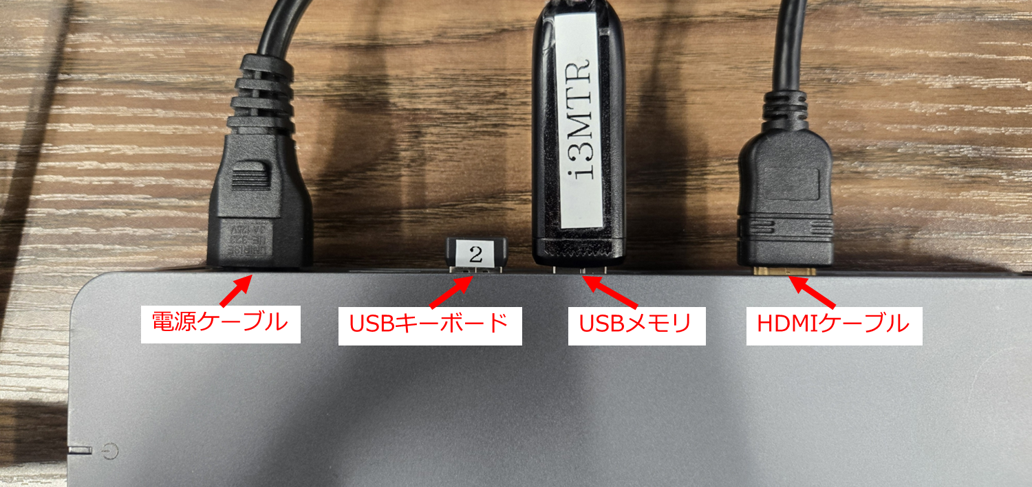 USBメモリとUSBキーボードをMini-PCのUSBポートに挿します。