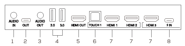 USB Type-B×2:HDMI IN と併用し、外部端末のタッチ操作ができます。