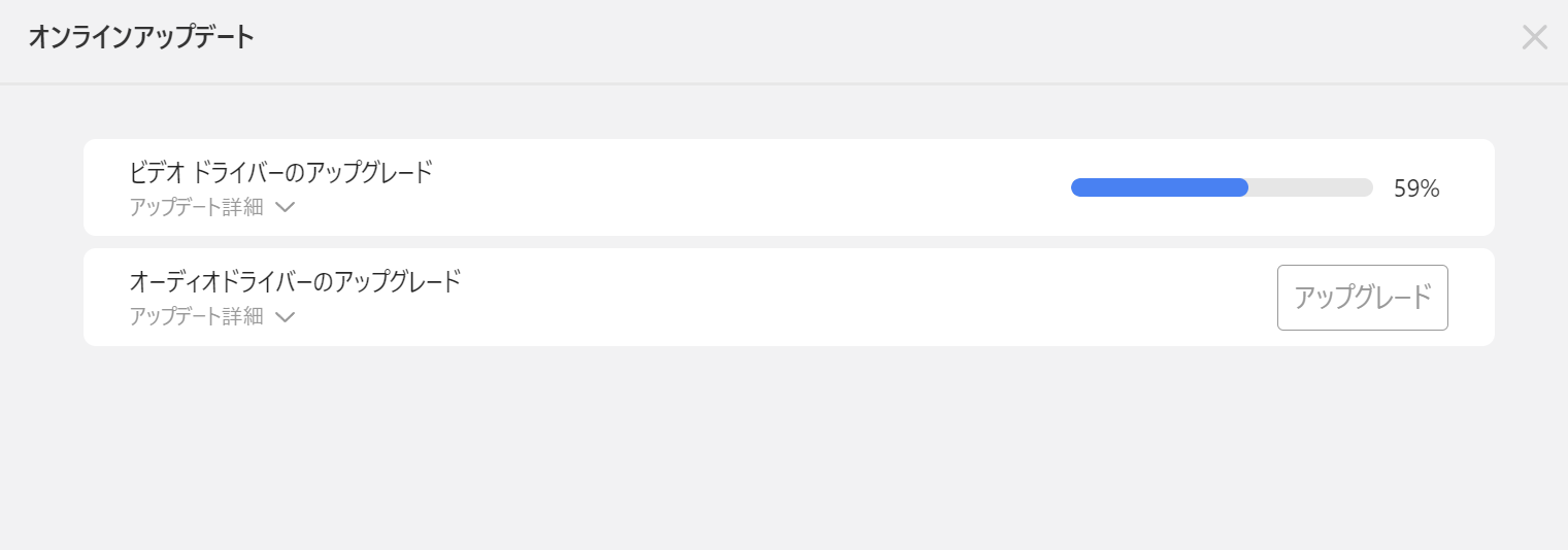 4.ドライバーのアップデートが自動的に始まります。100%になったらアップデート完了です。