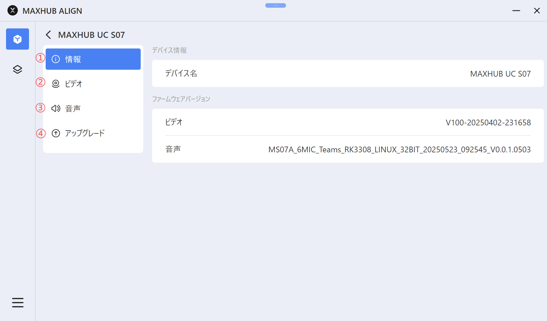 専用ソフトウェア(MAXHUB Align)を使用することで、本機の詳細設定やファームウェアアップデートが行えます。
