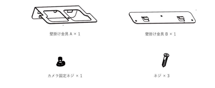 2. 本機に同梱されている下図の壁掛け金具一式を準備します。