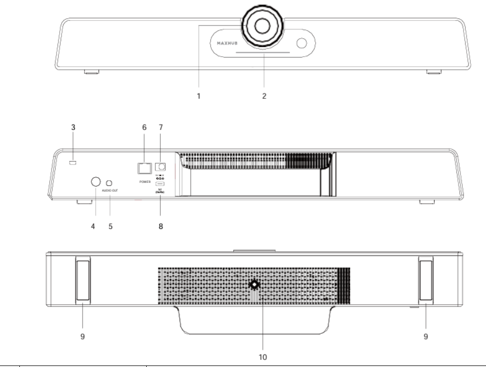 8 | USB3.0(Type-C) | 本機に付属している USB ケーブルで PC と接続します。 接続後、PC の外部カメラ、マイク、スピーカーとして本機を使用できます。 |