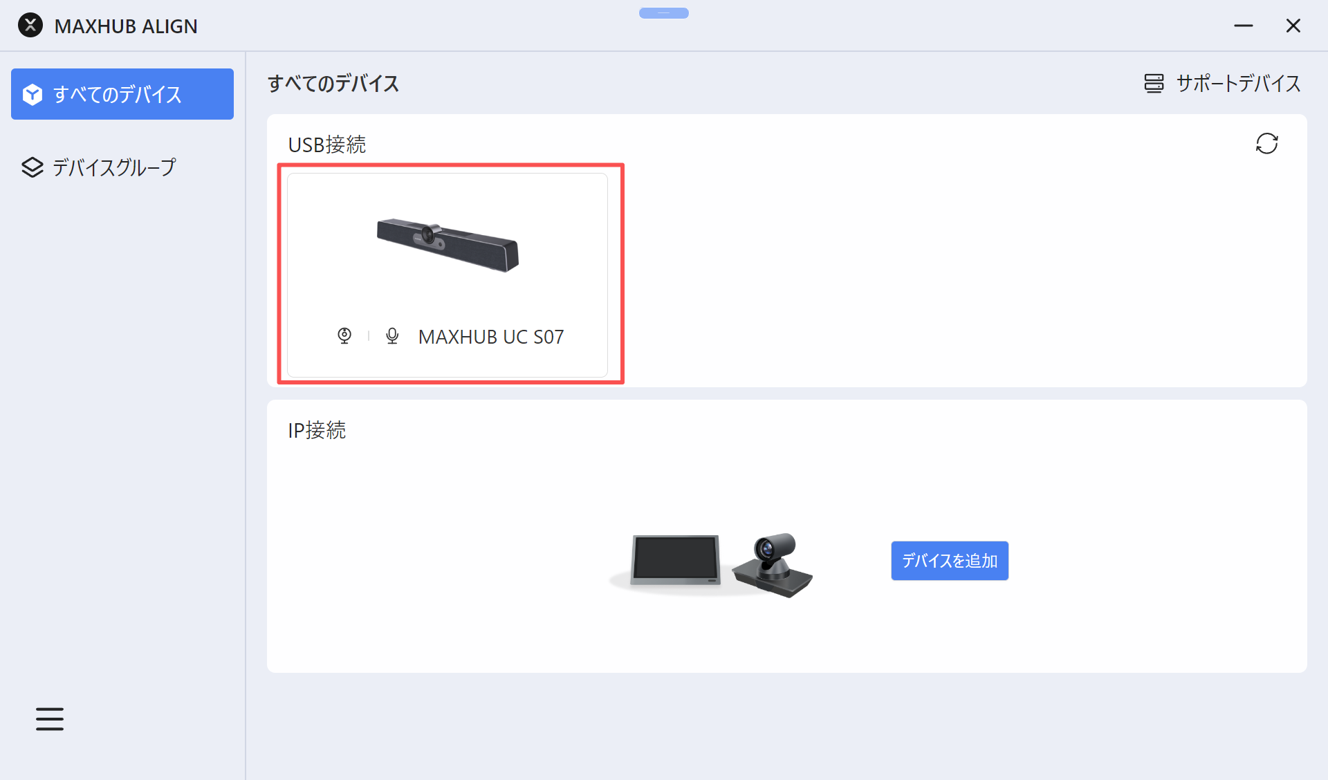 1.専用ソフトウェア(MAXHUB Align)を開き、デバイス名をクリックします。