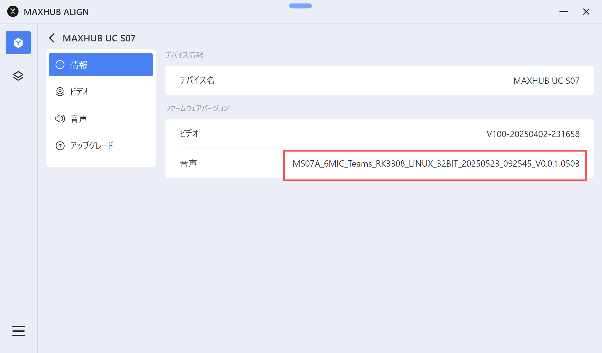 5.「情報」をクリックし、バージョン番号が更新されていることを確認します。