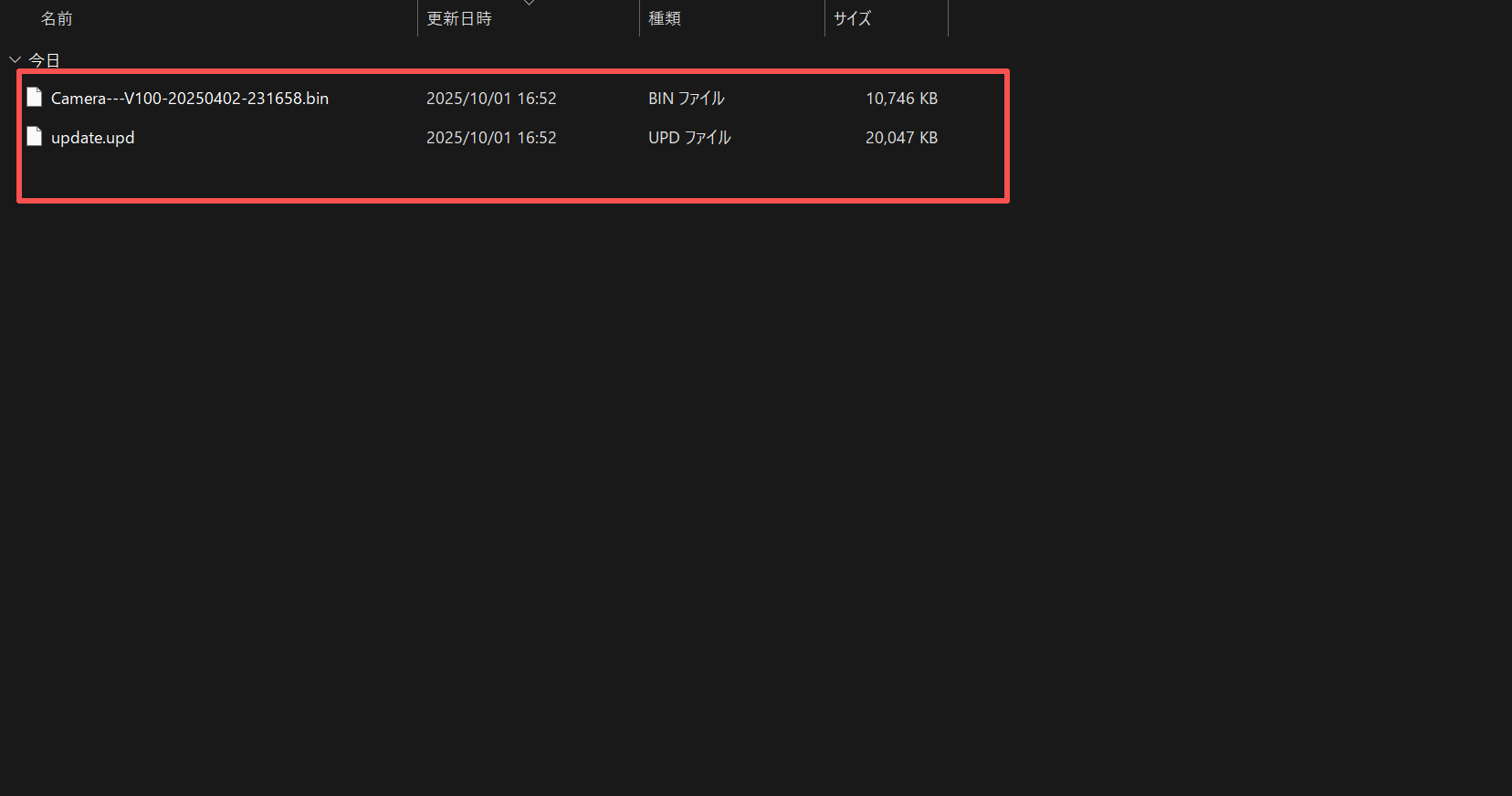4.展開後、フォルダー内にデータが2つあることを確認します。