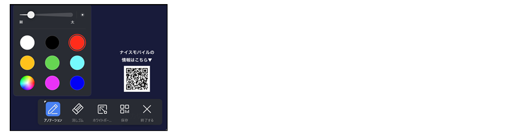 ・ ペンモード: ペンの色を選択して内容に書き込みます。