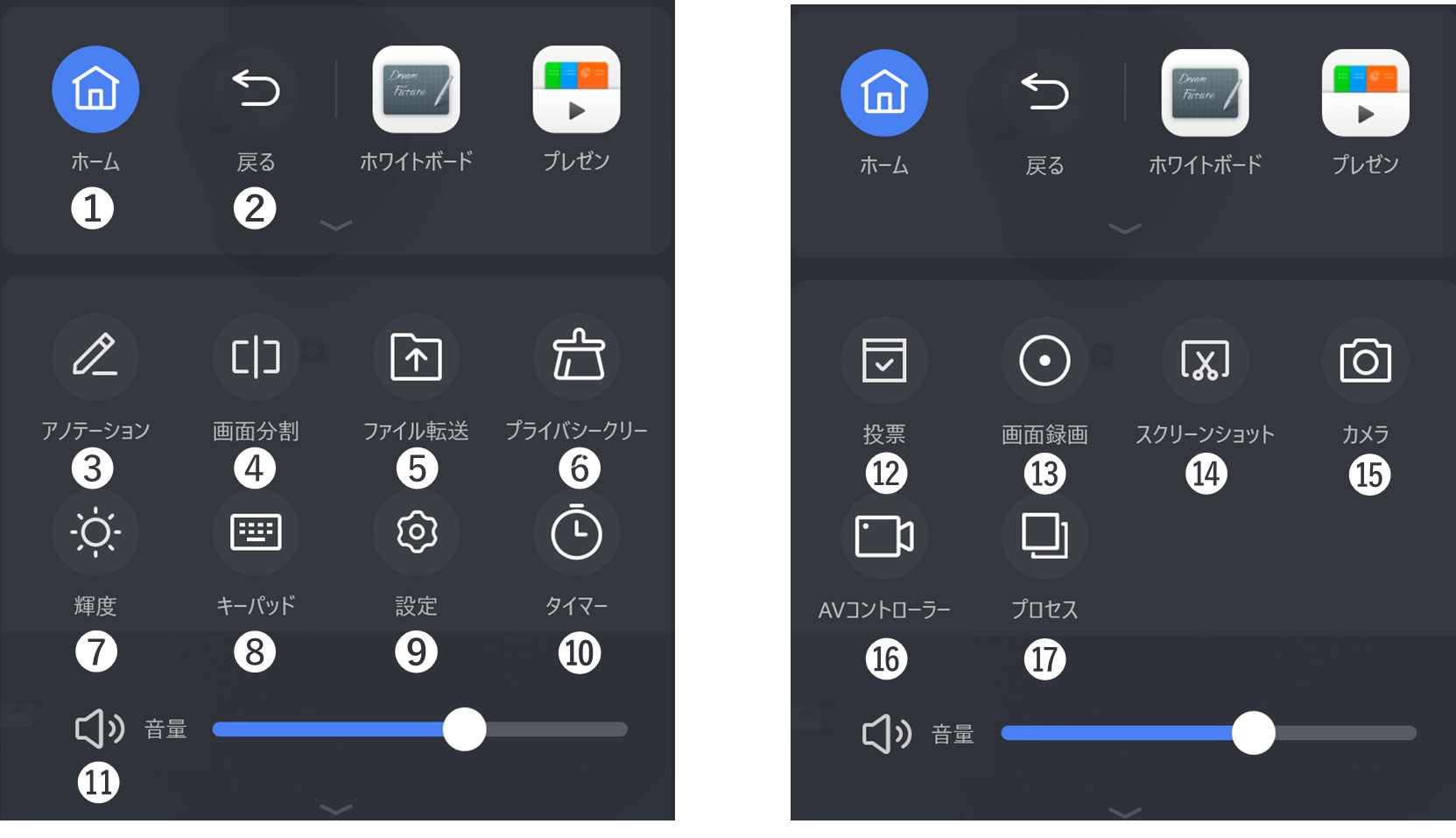 AVコントローラー:本機のカメラの設定ができます。詳細はこちら