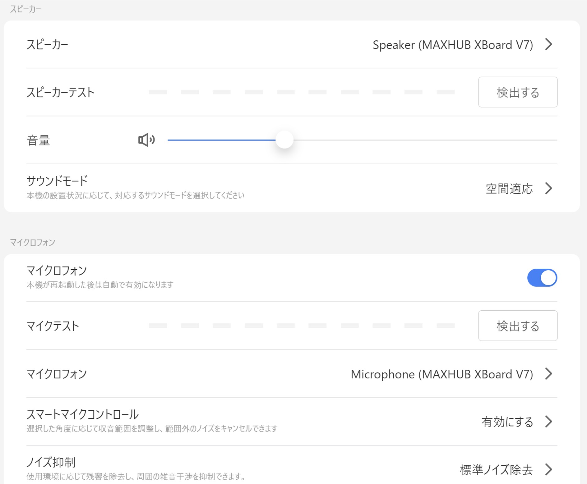 音声を出力するスピーカーを選択できます。デフォルトは本機が選択されています。