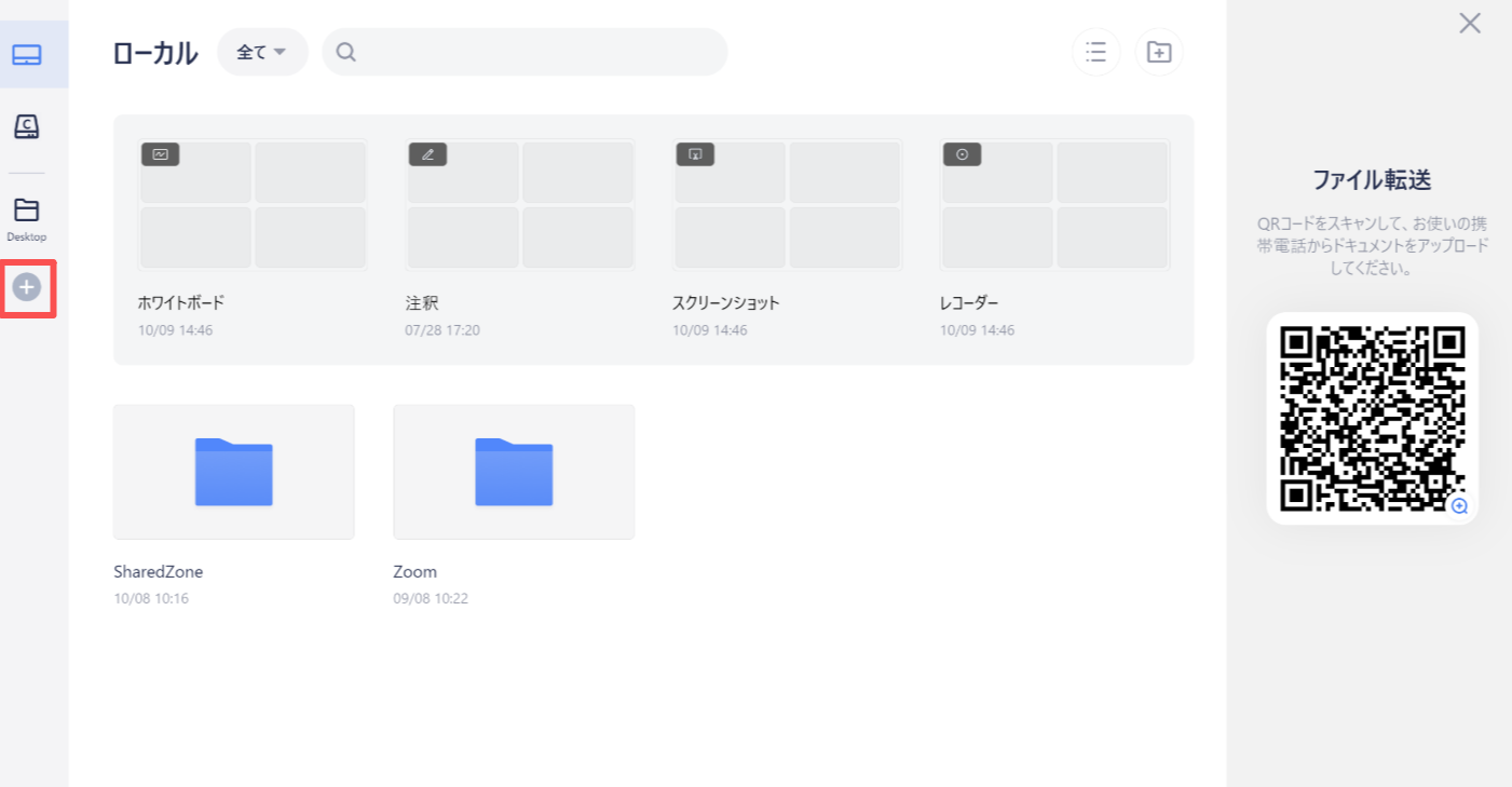 左端の+マークをタップすることで、参照先のストレージを追加をすることができます。