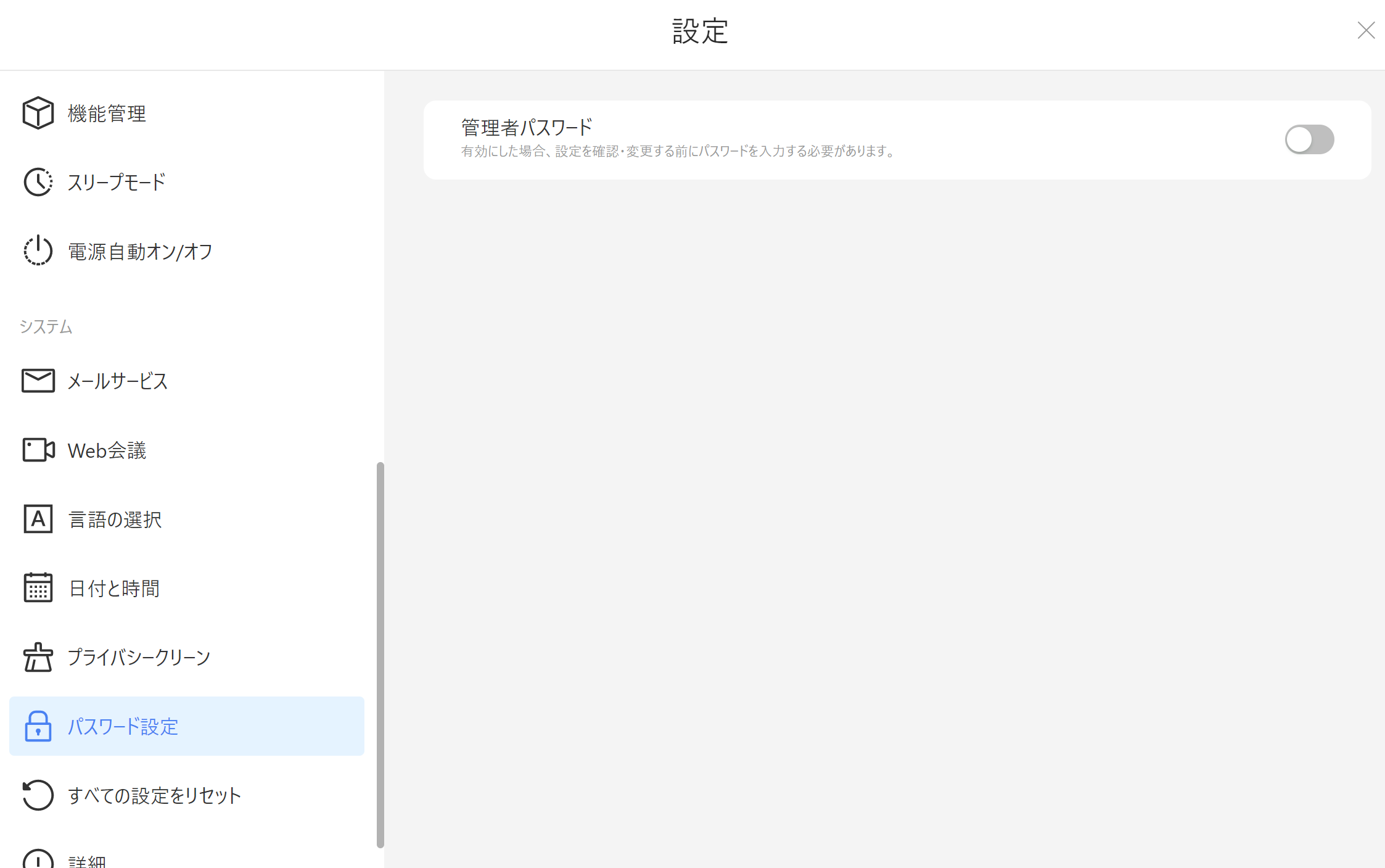 パスワードを有効化した後に設定を解除した場合、再度有効化する際にはパスワードの入力が必要です。