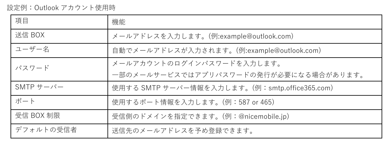備考:全てのメールサービスとの連携を保証するものではありませんのでご了承ください。