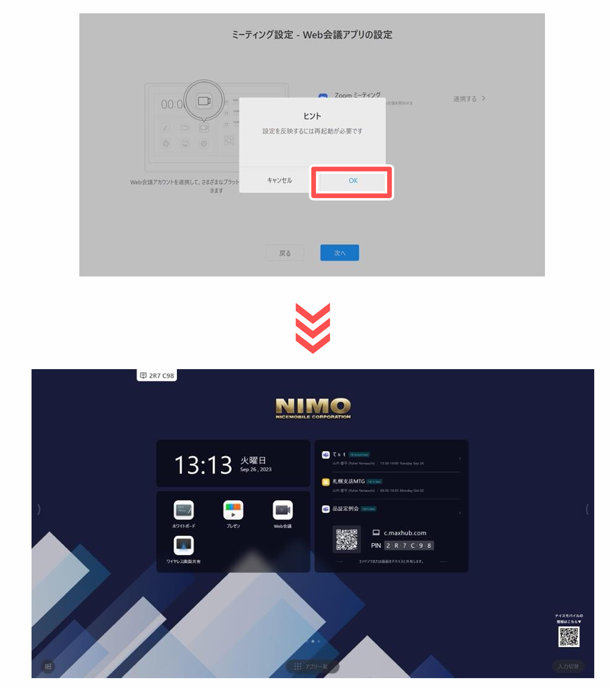 ご使用のミーティングボードの設定状況を選択後、「次へ」を押してください。
