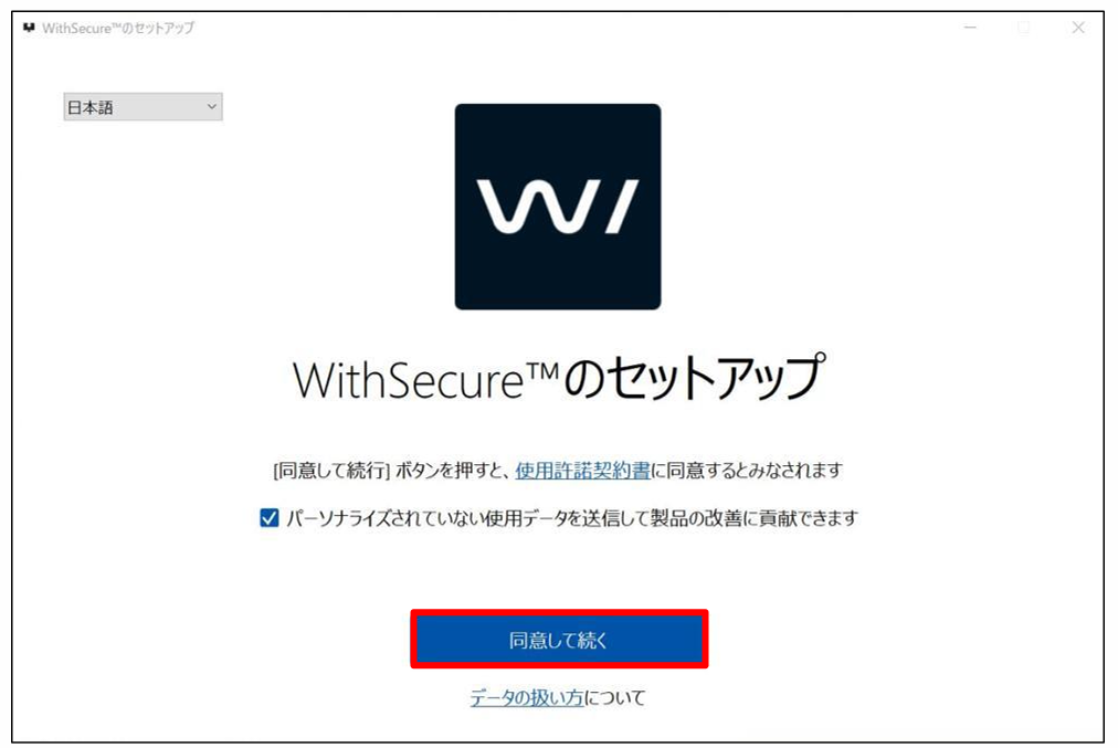 ①「パーソナライズされていない使用データを送信して製品の改善に貢献できます」に任意でチェックを入れます(推奨)。