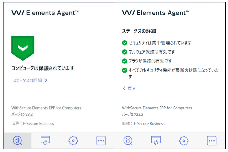 ⑦インターネットとの同期が完了すると、「コンピューターは保護されています」と表示されます。