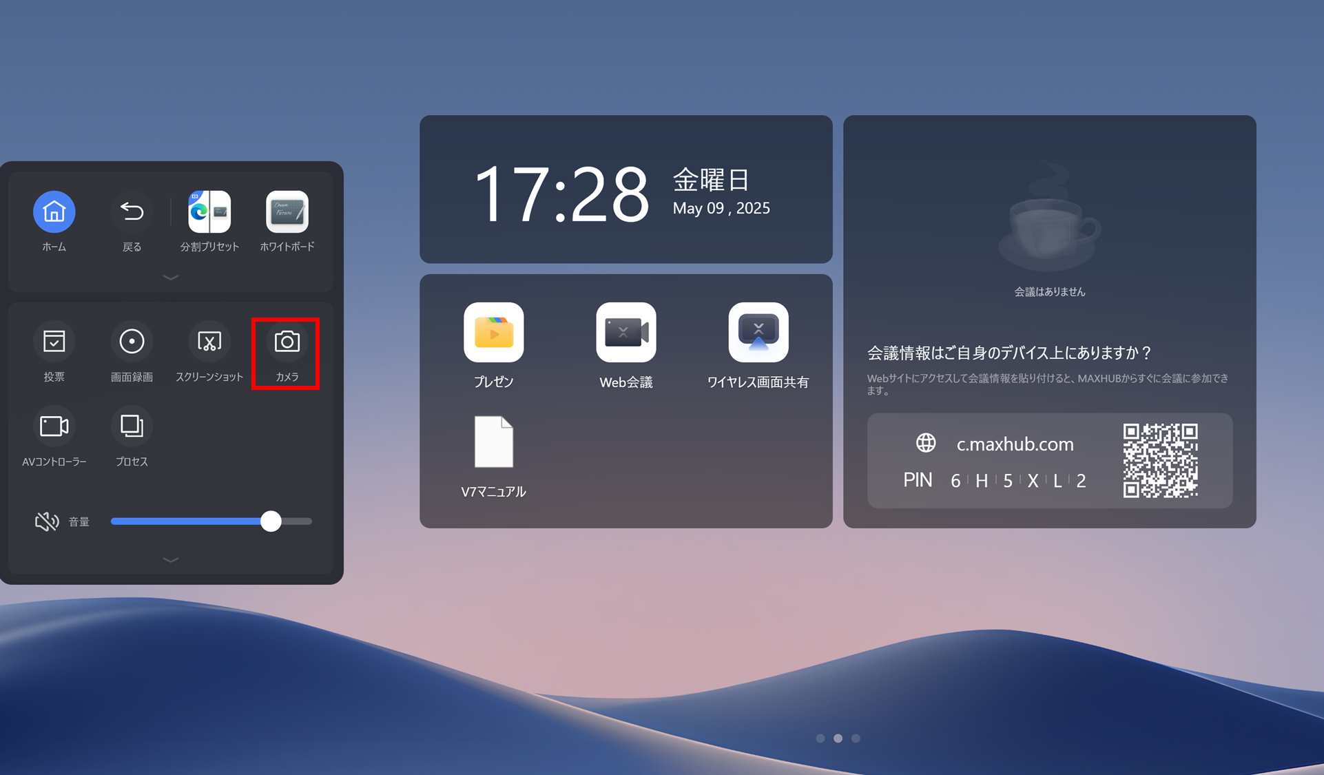 本項目はPCにワイヤレスドングルを接続し、ミーティングボードのカメラ・スピーカー・マイクをワイヤレスドングル経由で使用する機能(BYOM機能)ご利用時の内容となっております。