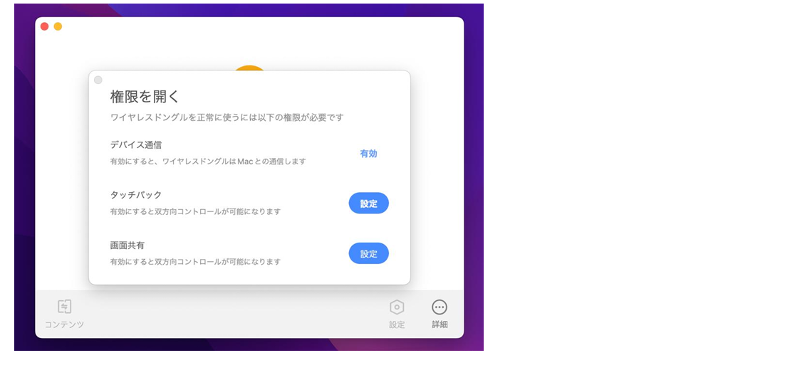 備考:初回接続時のみ画面共有アプリのインストールが必要になります。 2 回目以降はワイヤレスドングルをPCに接続すると自動でソフトウェアが起動します。