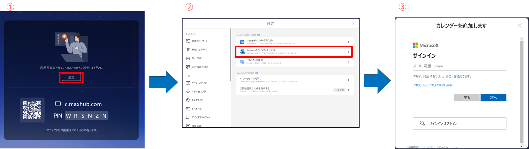2. 「Microsoftカレンダーアカウント」を選択