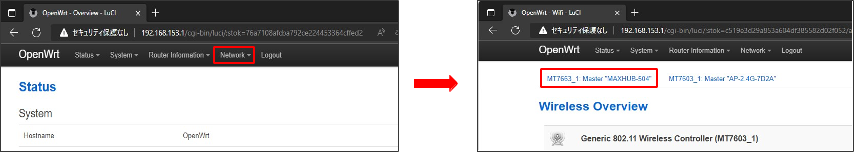 ページ上部の”MT7663_1:Master “MAXHUB-XXX” “をクリック