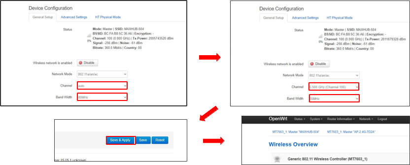 変更後、ページ下部の”Save&Apply”を選択し、WiFiページへ遷移するまで待機する