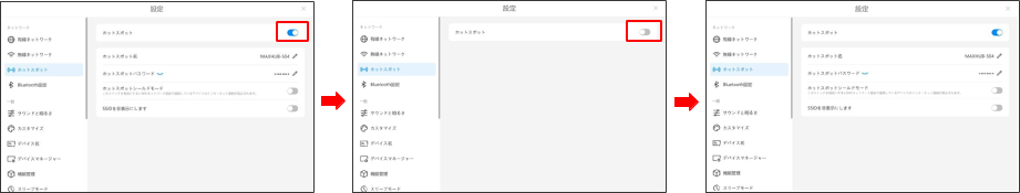 ホットスポットをOFF→ON と操作し、再起動する