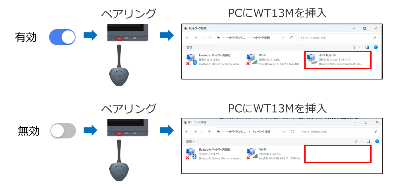 3. ワイヤレスドングル(WT13M)を本機とペアリングするとネットワークアダプターとして認識しないように設定されます