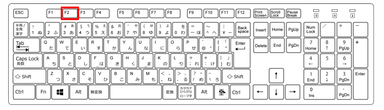 3.キーボードの「F2」キーを押しながら、本機の電源を入れます。