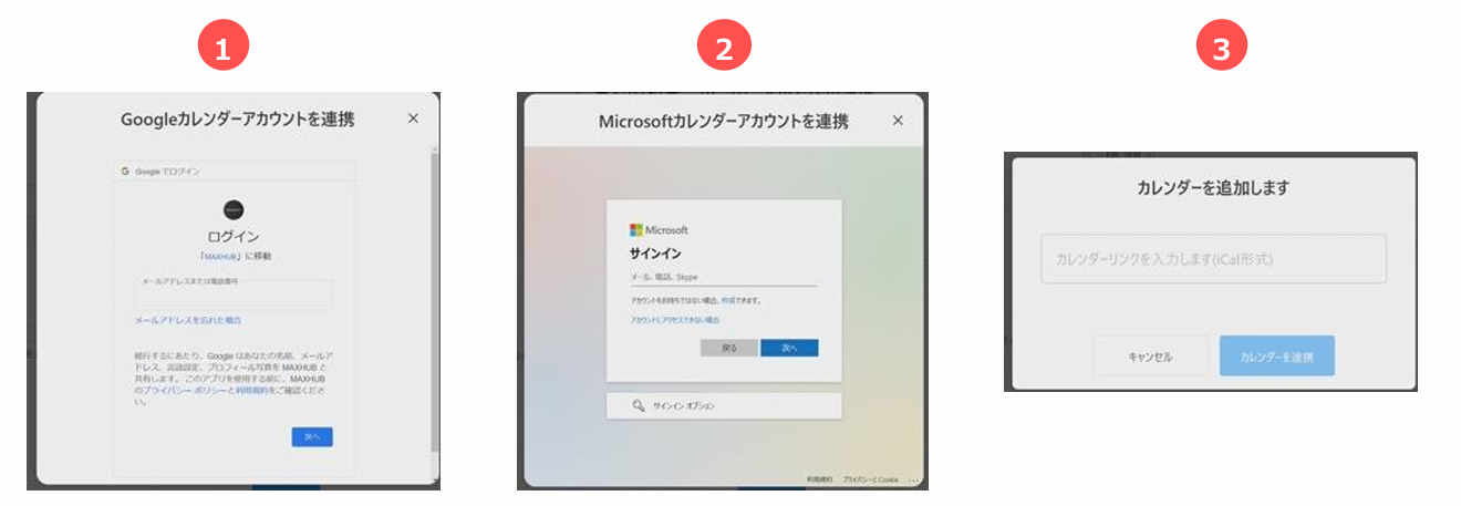 任意でホーム画面のカレンダーに表示する、会議室用のアカウントを連携できます。