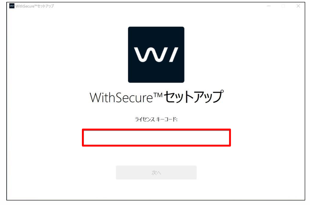 ④インストールが進行するとライセンスコードの入力画面が表示されます。 担当者様のメールアドレス宛に届いている20桁のライセンスコードを入力してください。