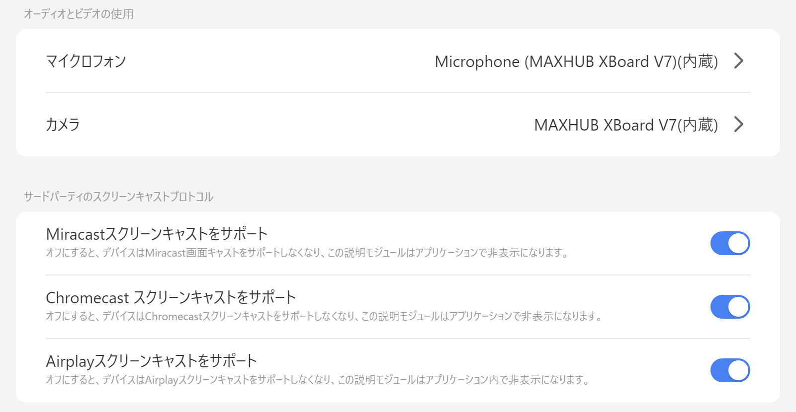 Miracast、Chromecast、Airplayの画面投影を制限できるようになりました。