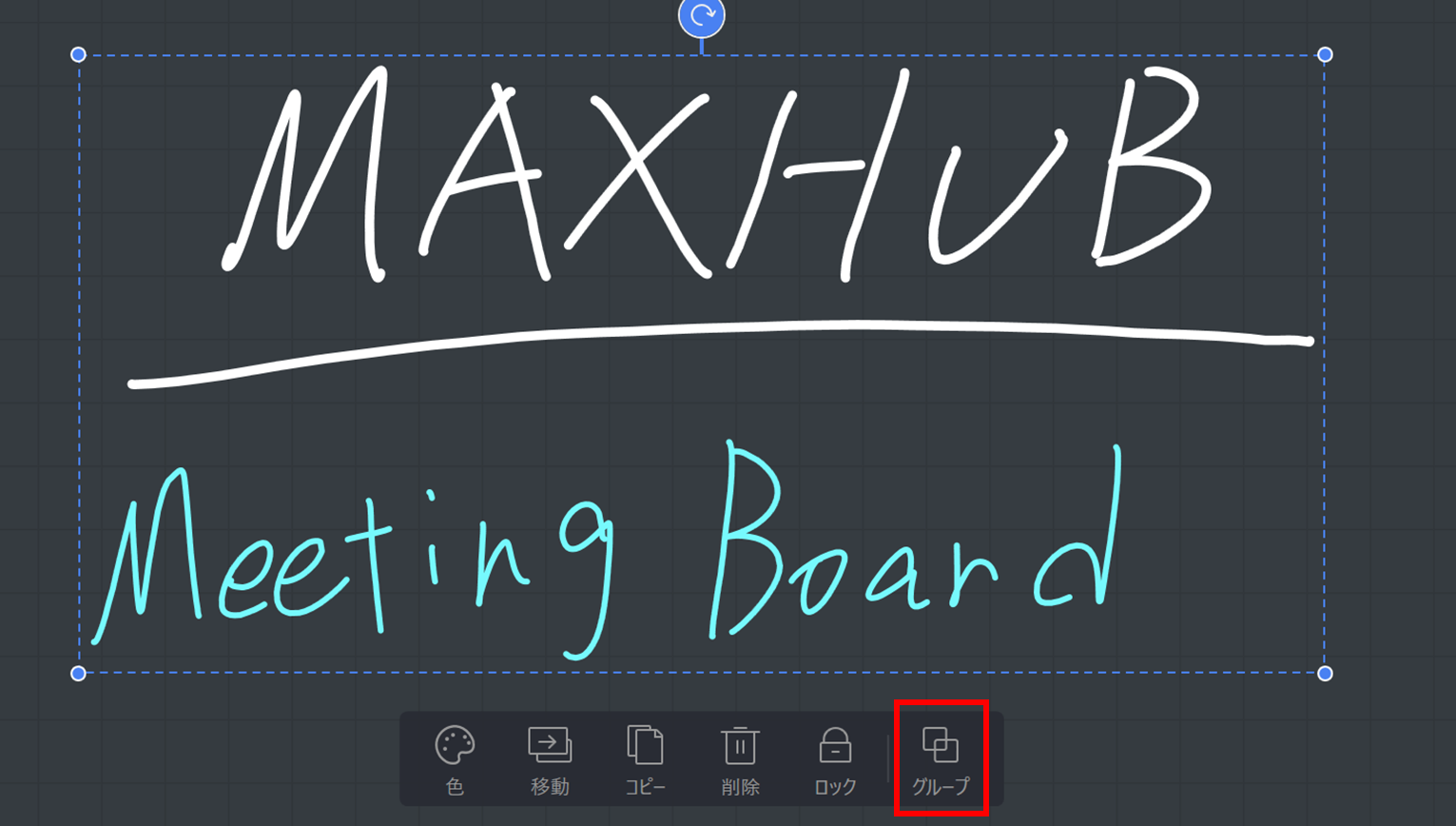 書き込んだ文字や図形を選択した際にグループ化ができるようになりました。