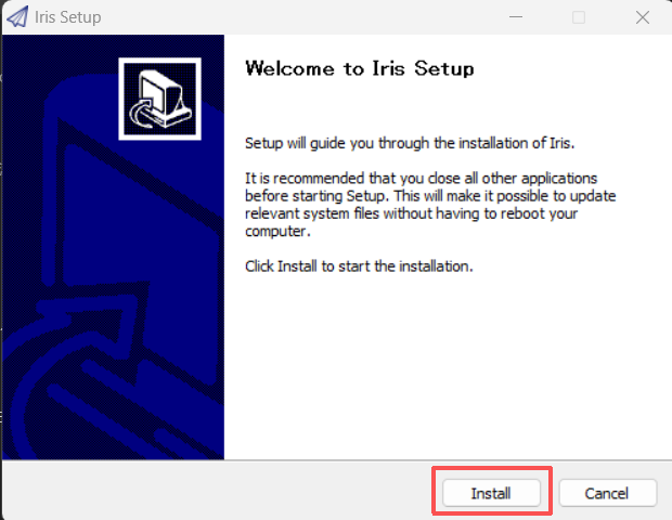 「IrisSetup_2.2.38.59_oversea_obm.exe」右クリック(タッチ長押し)して、「管理者として実行」します。