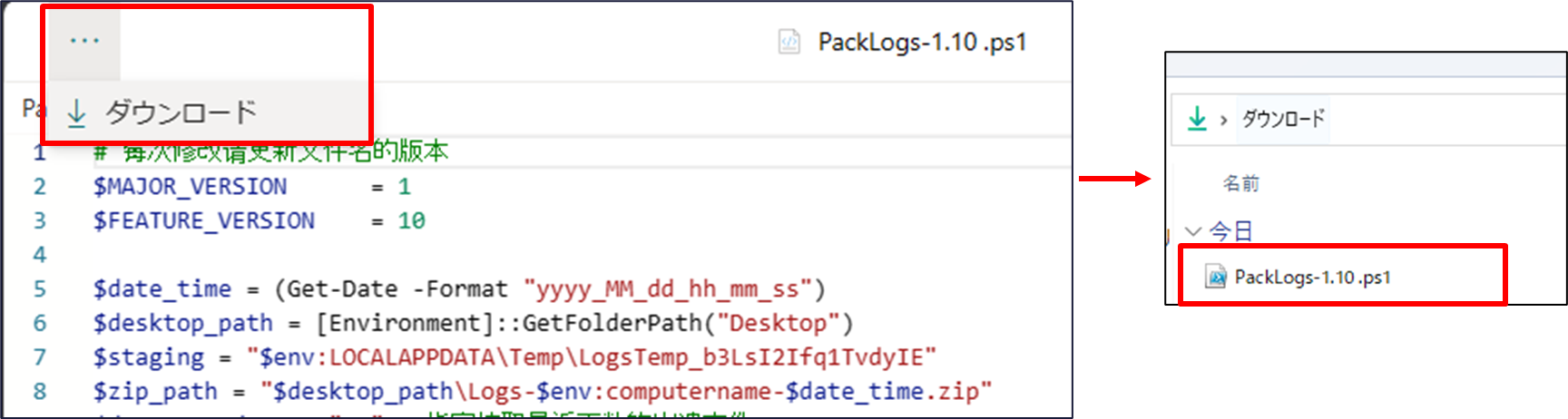 当該PCで本webページにアクセスし下記リンクからログ収集用ファイル(Windows Powershell 用のスクリプト)をPCにダウンロードします