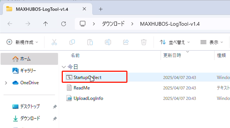 フォルダ内の「StartupCollect.bat」をダブルタップ(ダブルクリック)してください。