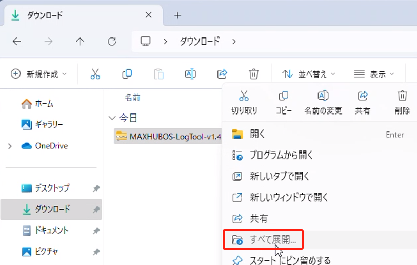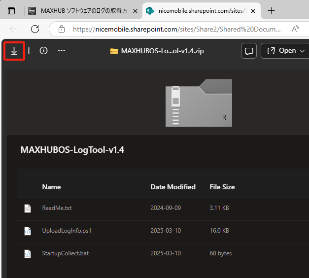 下記のURLから、ログ取得ソフトウェアのzipファイルをダウンロードします。