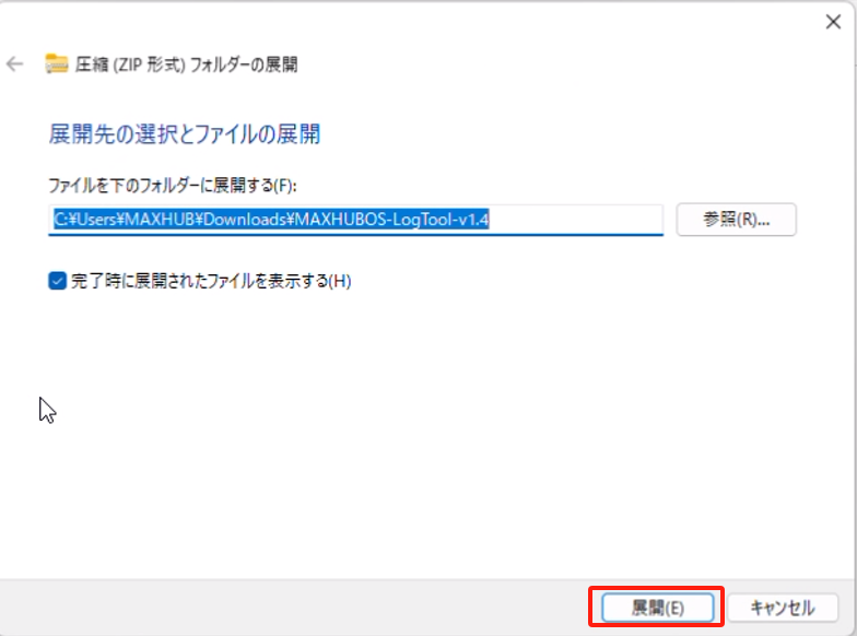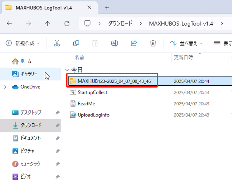 同じフォルダ内にログファイル(zip形式)が出力されます。