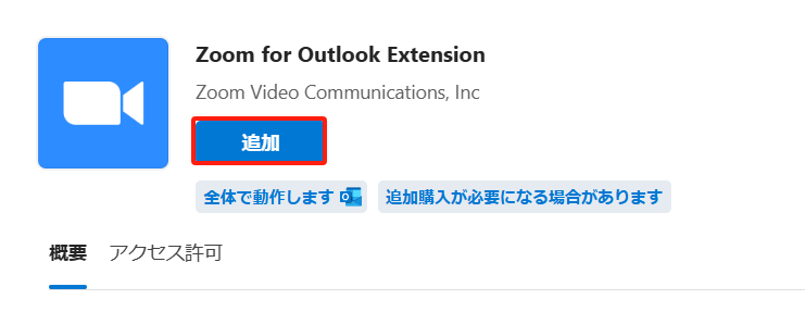 検索欄に「zoom」と入力し、「Zoom for Outlook Extension」を選択します
