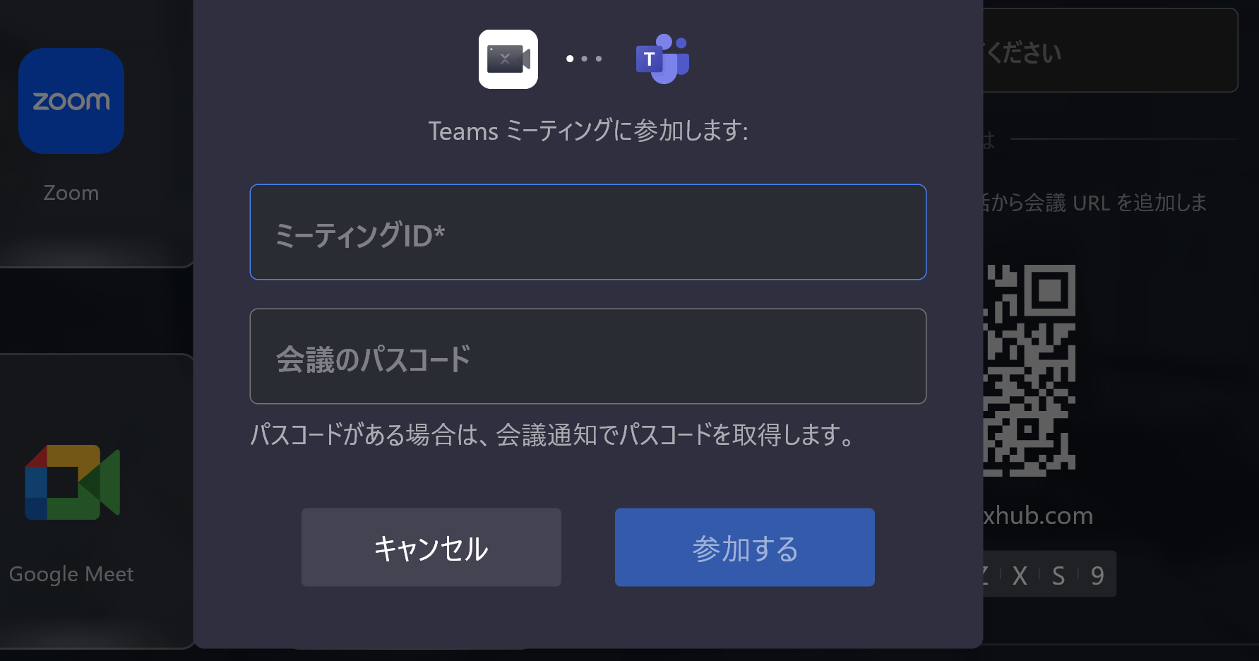 1) WEB会議アプリのQRコードをスマートフォンで読み込みます。