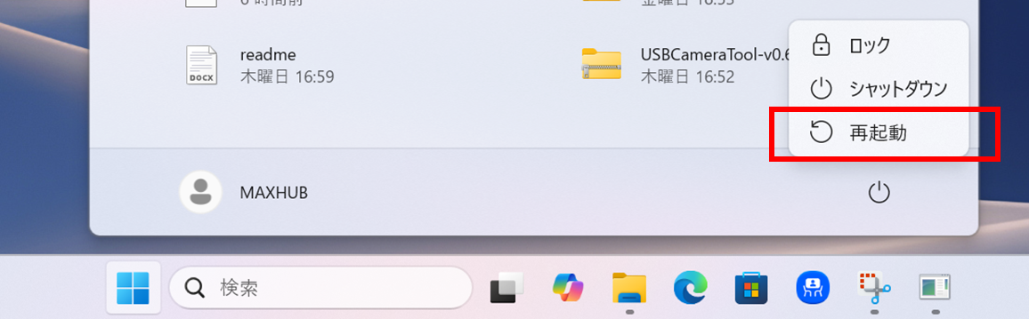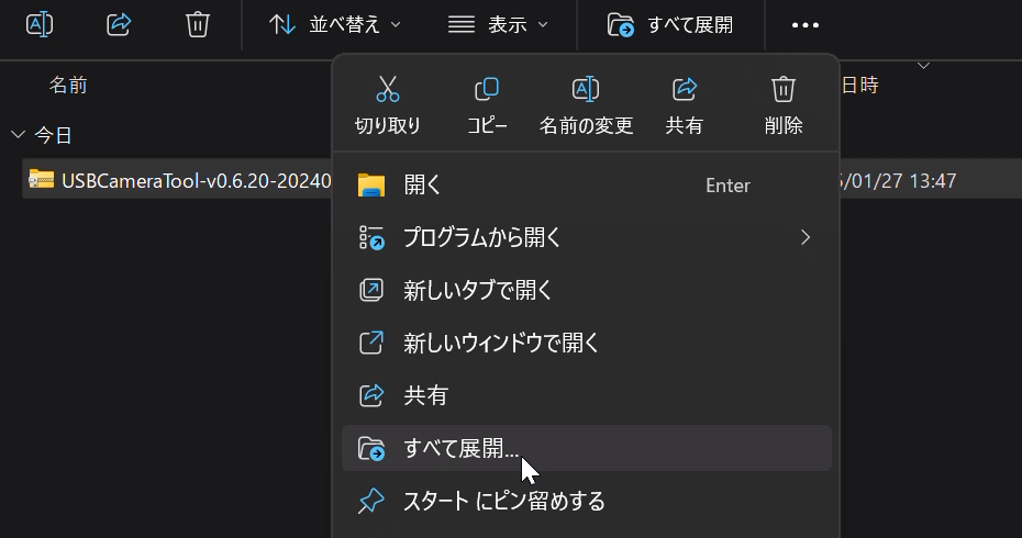 3.再起動後、再度USBCameraTool-v0.6.20-20240627フォルダを開きます。