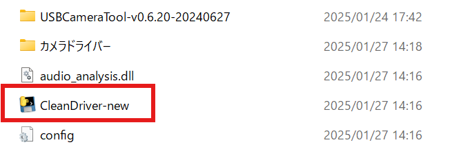 1.USBCameraTool-v0.6.20-20240627内の「CleanDriver-new」をダブルタップして実行します。黒いウィンドウが閉じたら2番へ進みます。