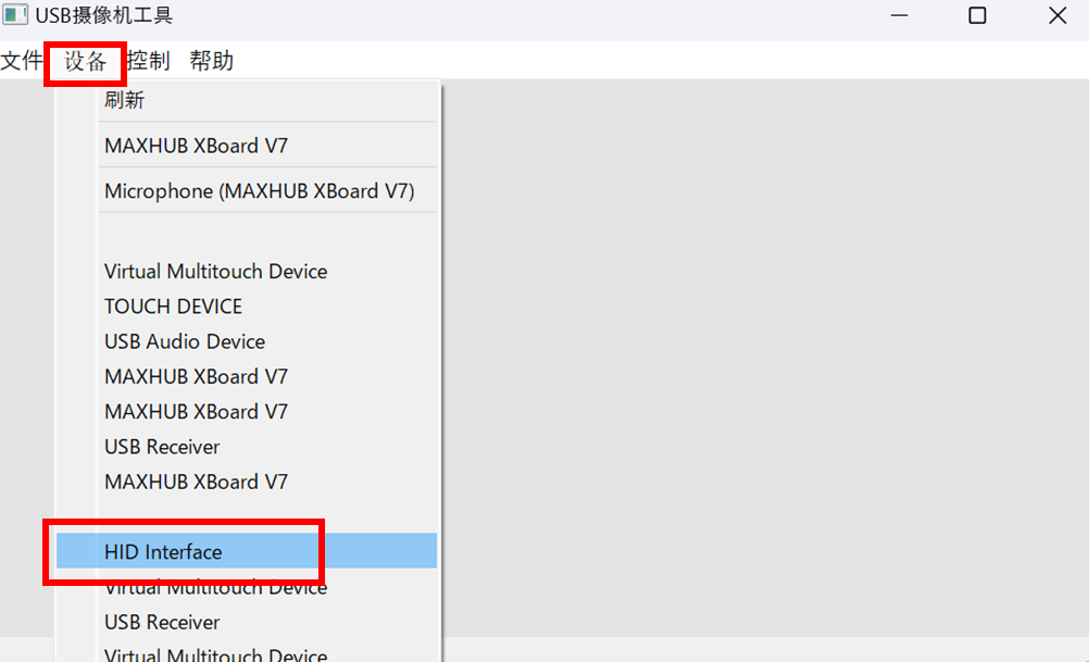 4.上部左から2番目のタブをタップし、HID Interfaceをタップします。