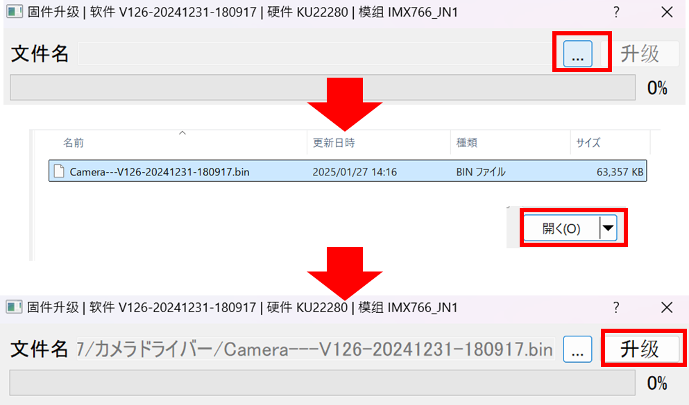 Camera---V201-20250414-192926.binを選択し、「開く」を選択してください。