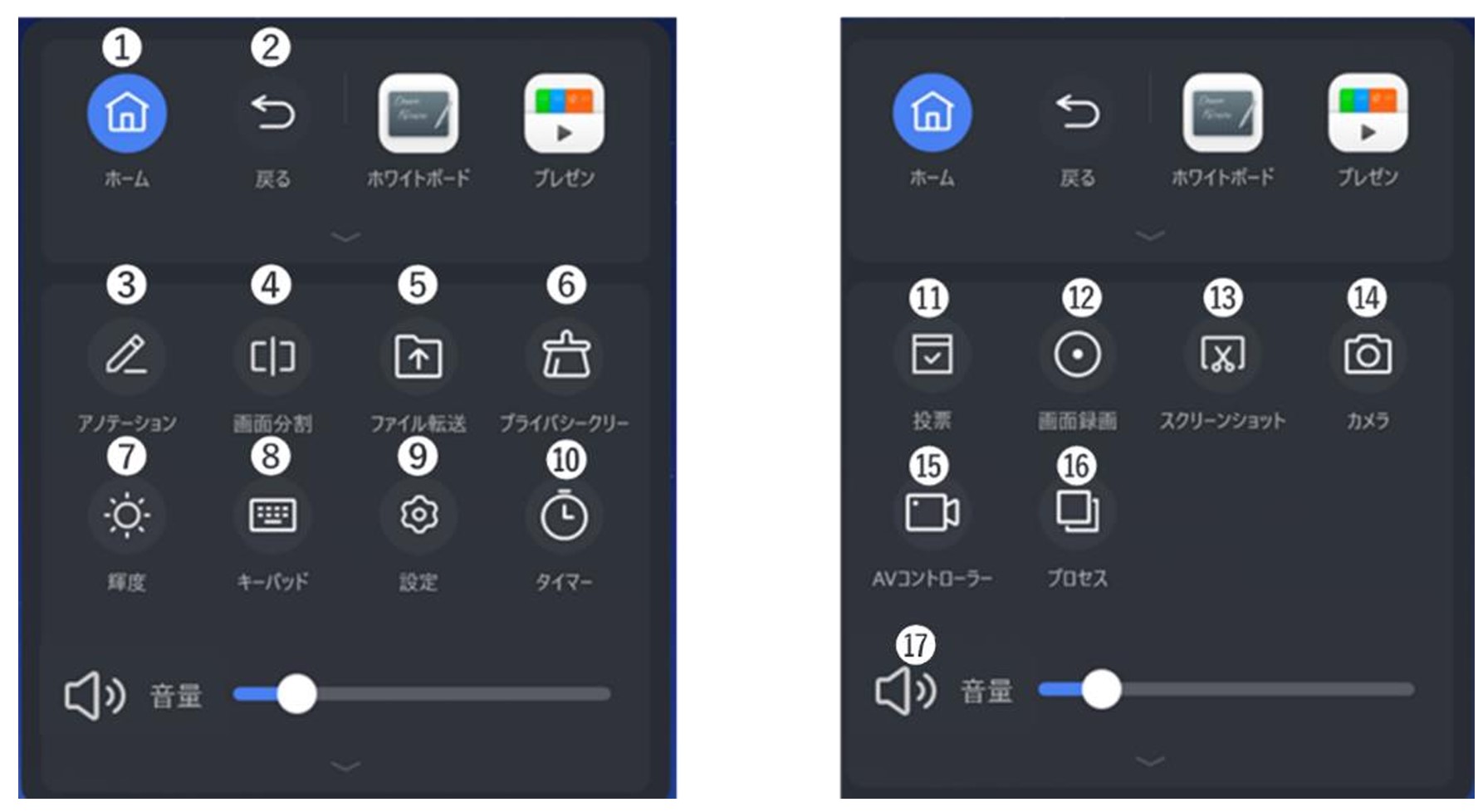 ⑮AVコントローラー:WEB会議アプリでカメラが使用中でもカメラの制御が可能です。内蔵カメラのみに対応しています。詳細はこちら