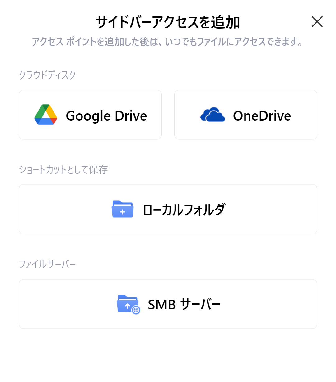 左端の+マークをタップすることで、参照先のストレージを追加をすることができます。