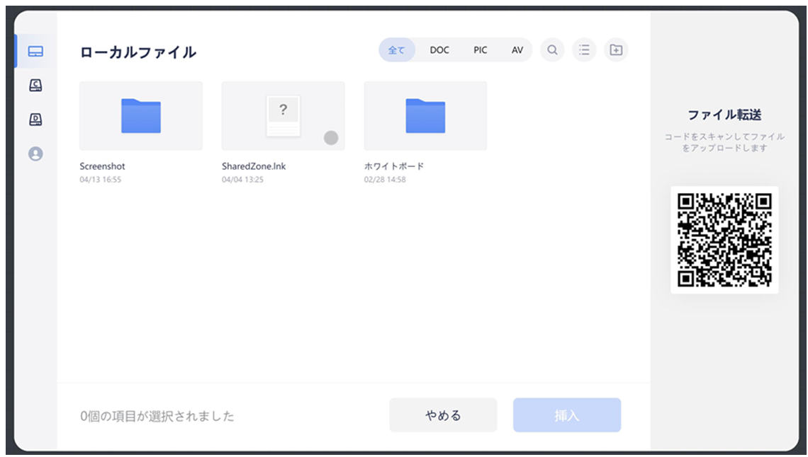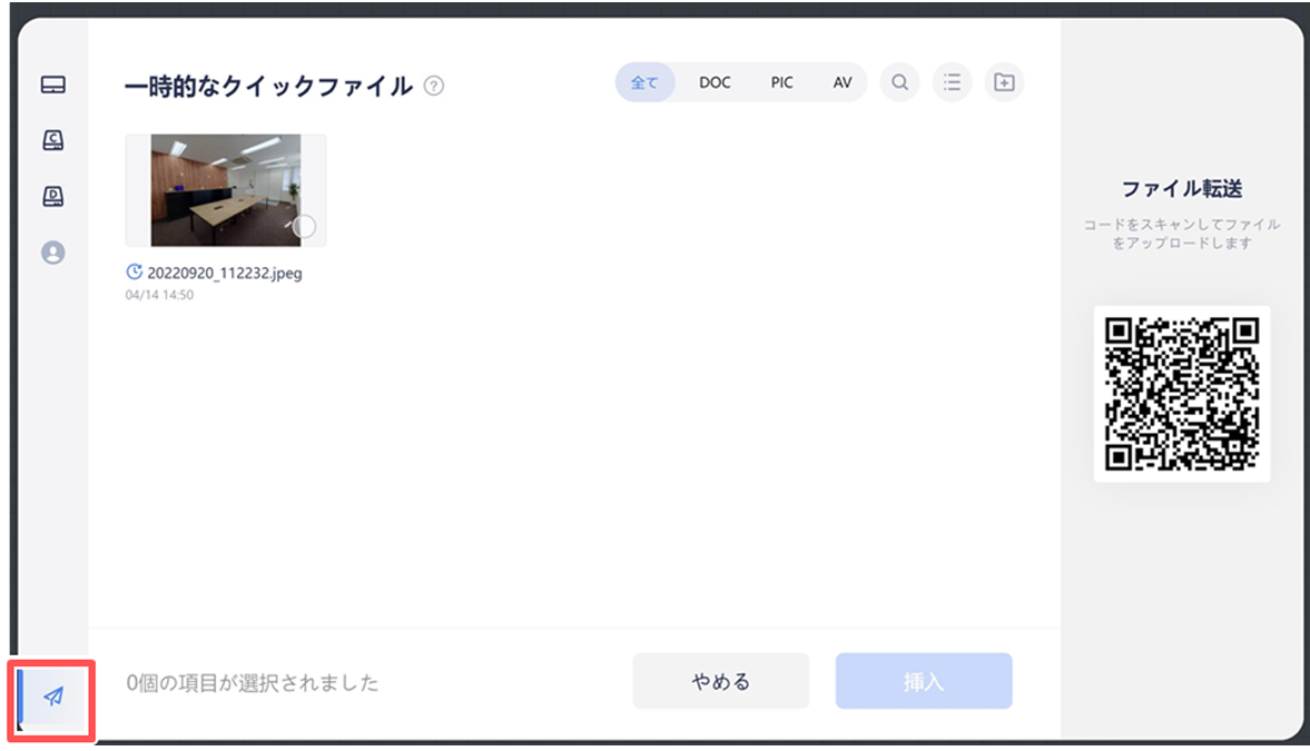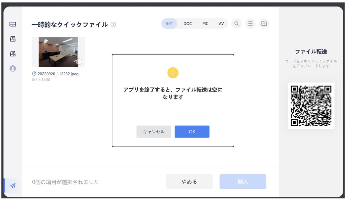 4)転送されたファイルは「一時的なクイックファイル」に一時的に保存されます。プレゼンテーションを閉じるか、 本機をシャットダウンすると「一時的な受信ファイル」は消去されます。