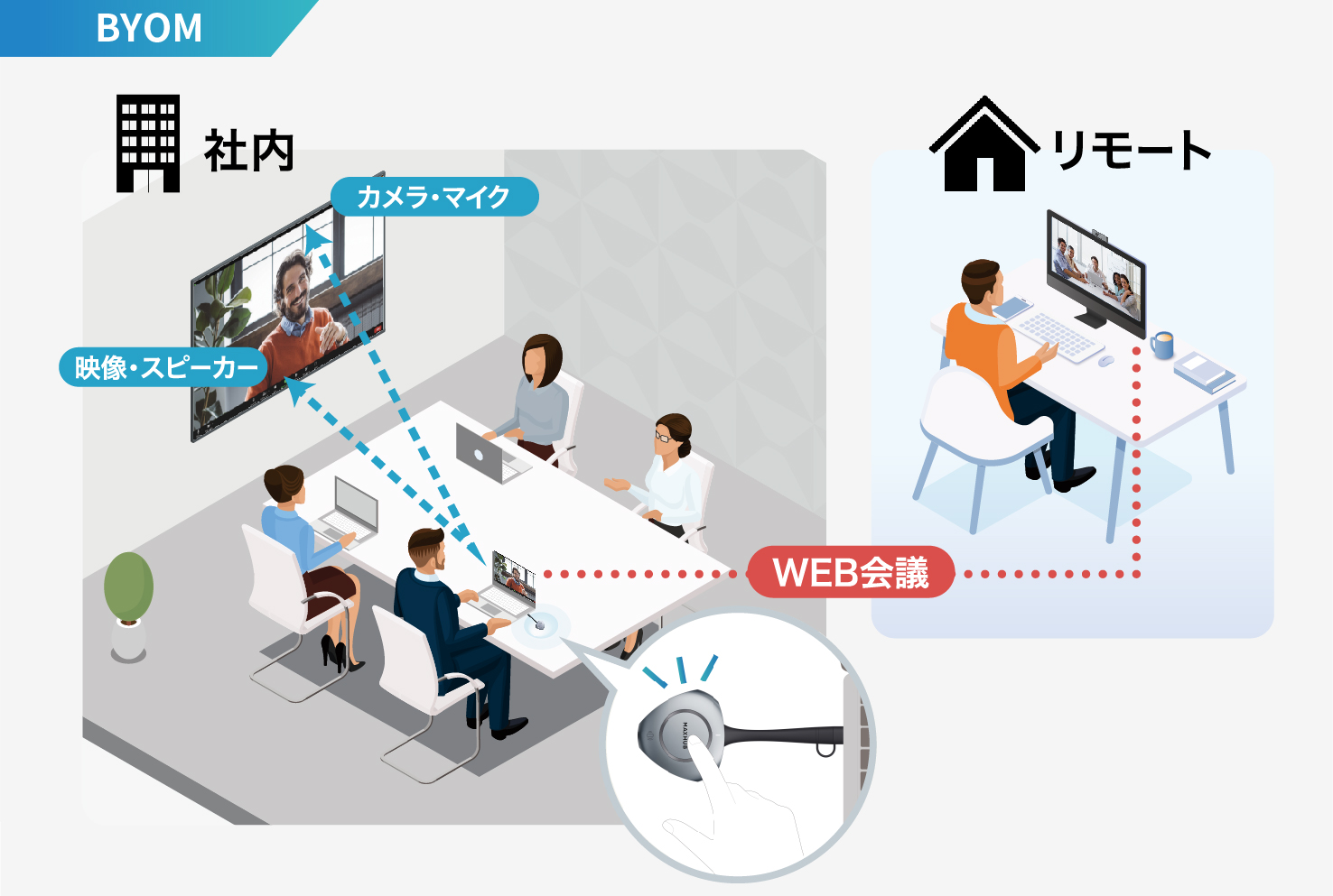 本項目はPCにワイヤレスドングルを接続し、ミーティングボードのカメラ・スピーカー・マイクをワイヤレスドングル経由で使用する機能(BYOM機能)ご利用時の内容となっております。