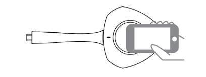 NFC機能を持ったスマートフォンをワイヤレスドングル中心部にあるNFCセンサーにかざすと、画面投影アプリケーション「Exceed Share」から画面投影できます。「Exceed Share」がインストールされていない場合、ダウンロードサイトに移行します。