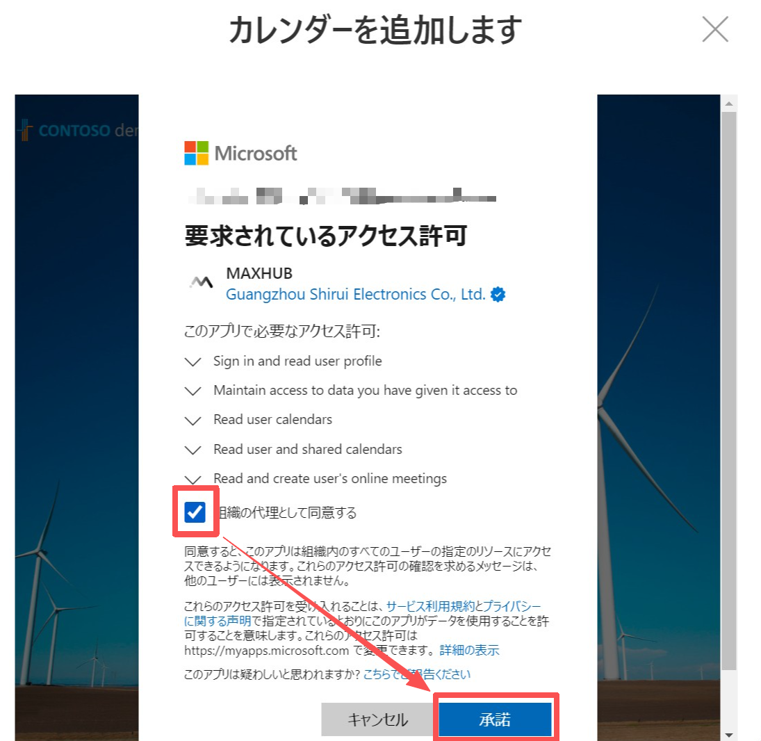 必要なアクセス許可が表示されます。「組織の代理として同意する」にチェックを入れ、「承諾」を選択すると、組織内のその他のアカウントもサインイン可能な状態になります。