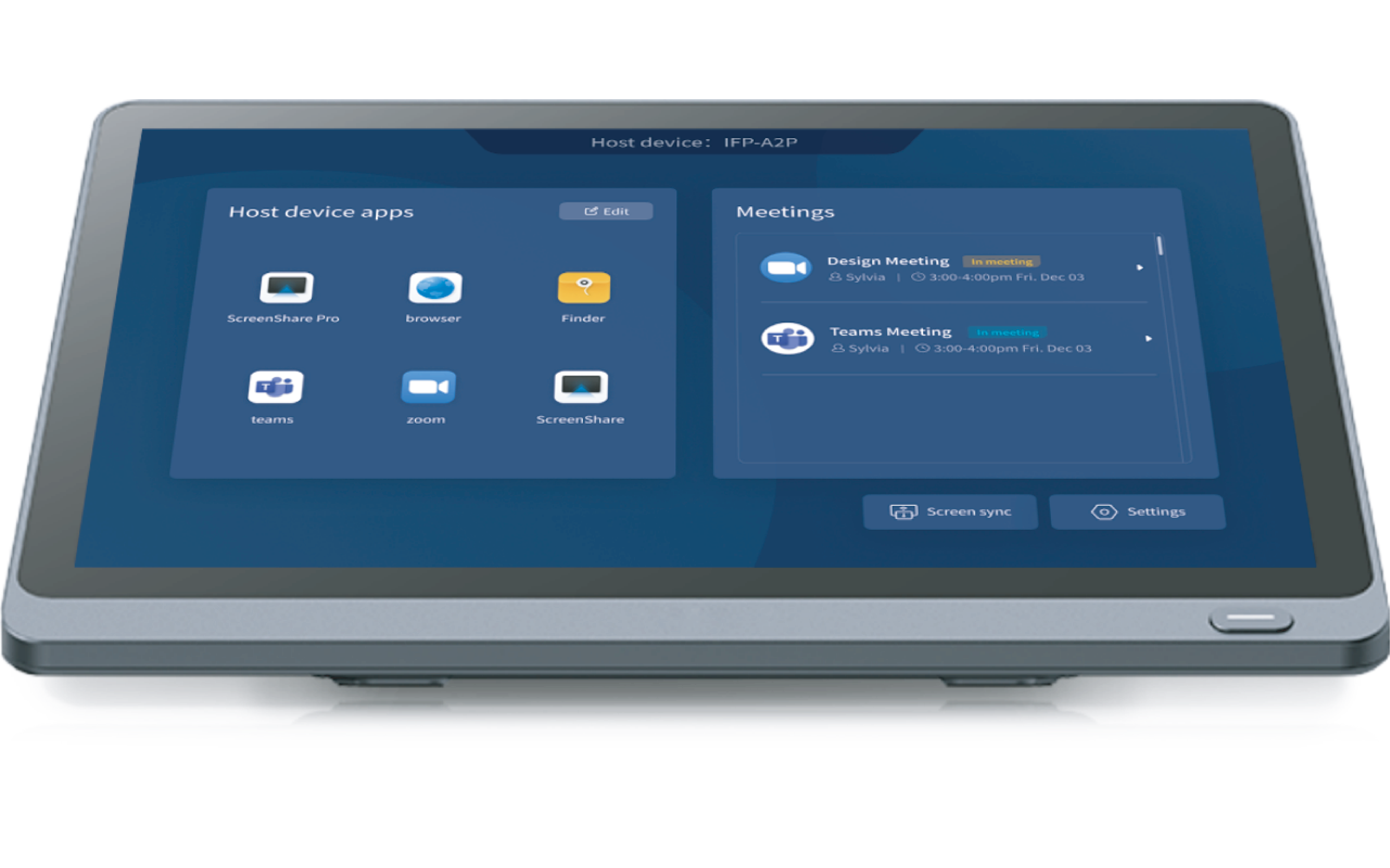 クライアントPCのOutlookやTeamsから会議室リソースアカウントにWEB会議のスケジュールを送信すると、本機のホーム画面に会議の予定が表示され、ワンタップでWEB会議に参加できます。