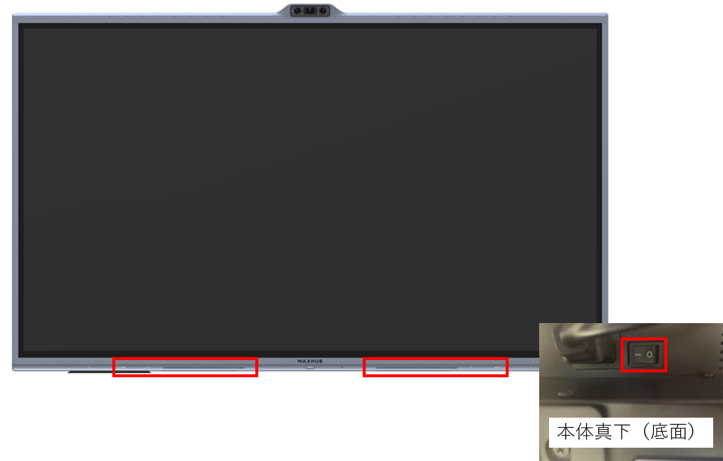 1.本体底面の電源ケーブル挿し口付近に主電源のスイッチがあります。