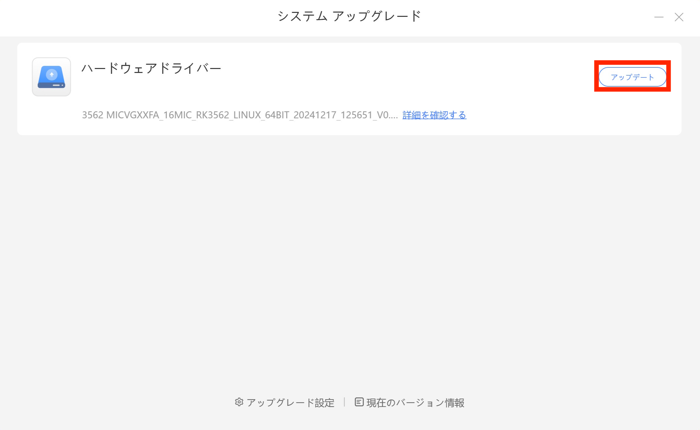 アップデートが正常に完了すると各ドライバー・本体ファームウェア(DSU)のバージョンは下記の通りとなります。